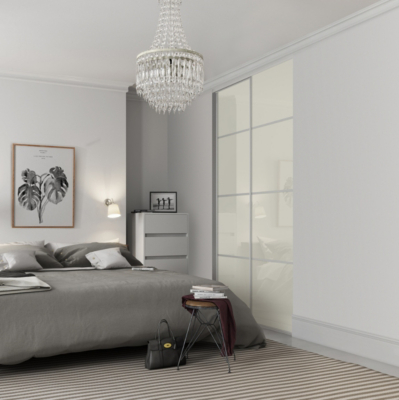 Silver Frame White Glass 4 Panel Sliding Wardrobe Doors Wardrobes